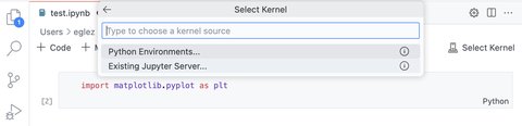 Open a local Jupyter notebook (a file with a .ipynb extension) and click on Select Kernel at the top right of the window: