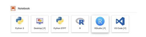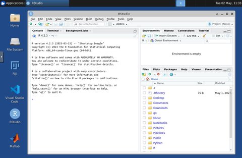 The IMAXT environment offers as well the posibility of running RStudio. In order to do so, select RStudio from the Launcher.