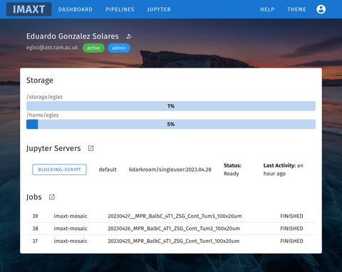 The IMAXT Analysis Platform is a software environment that uses Cloud principles to provide on demand resources and data access to scientists.